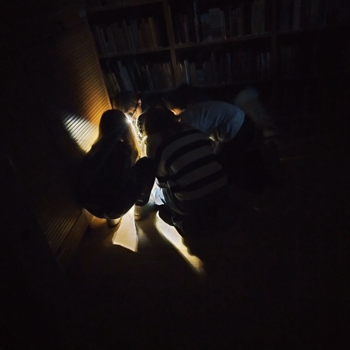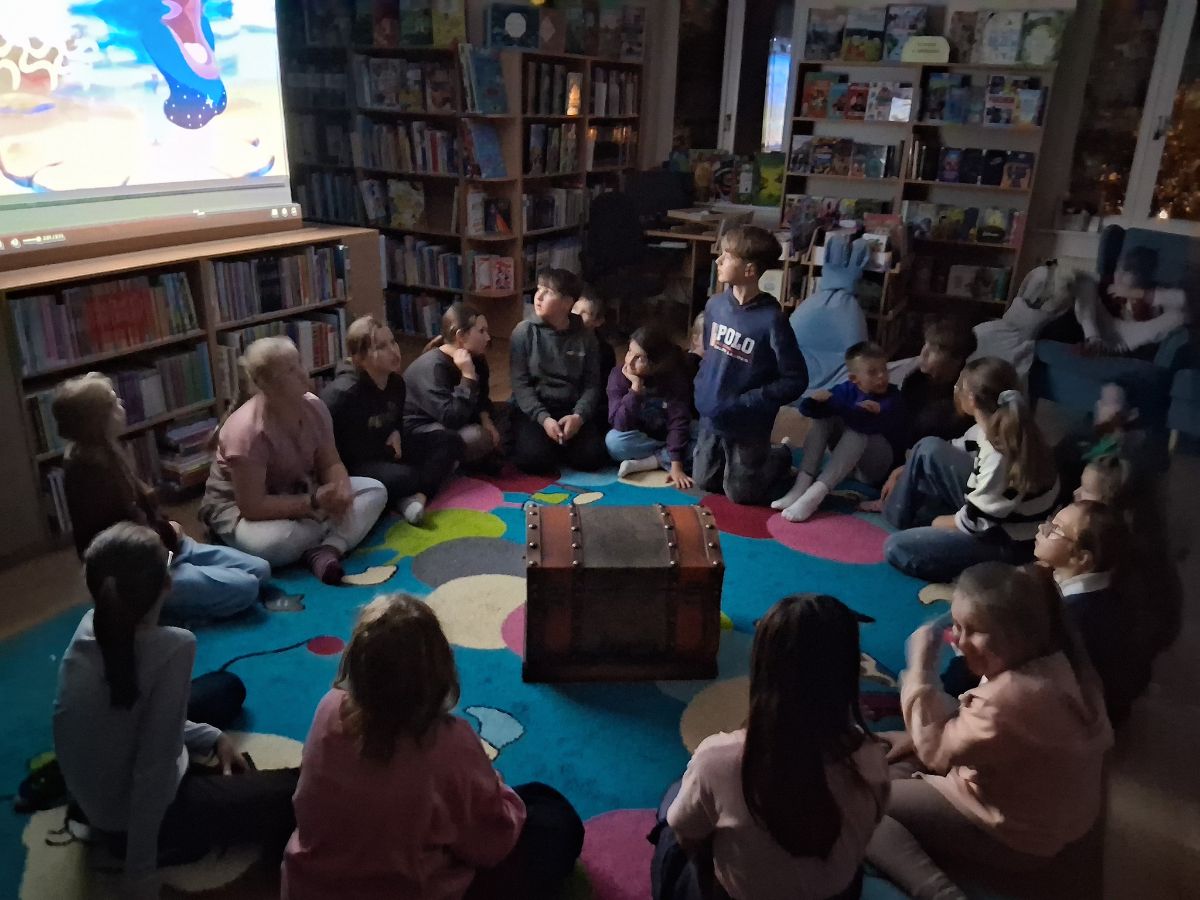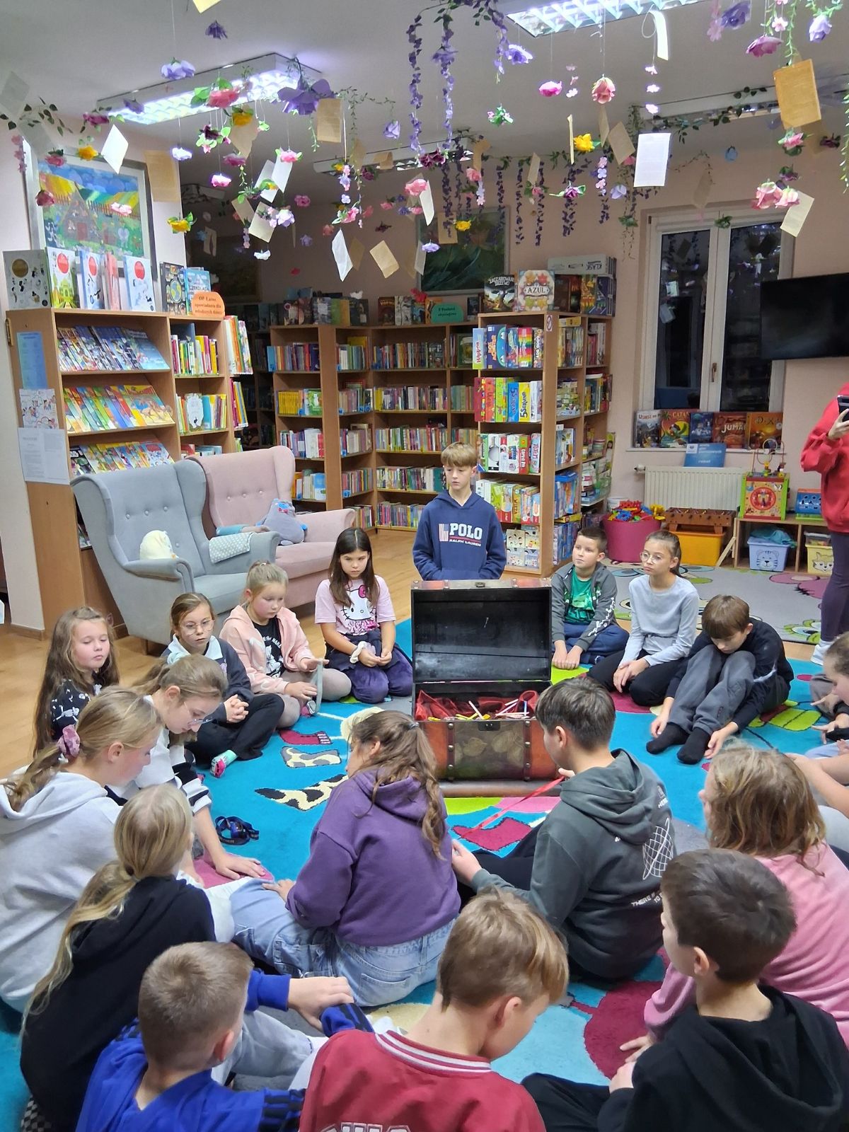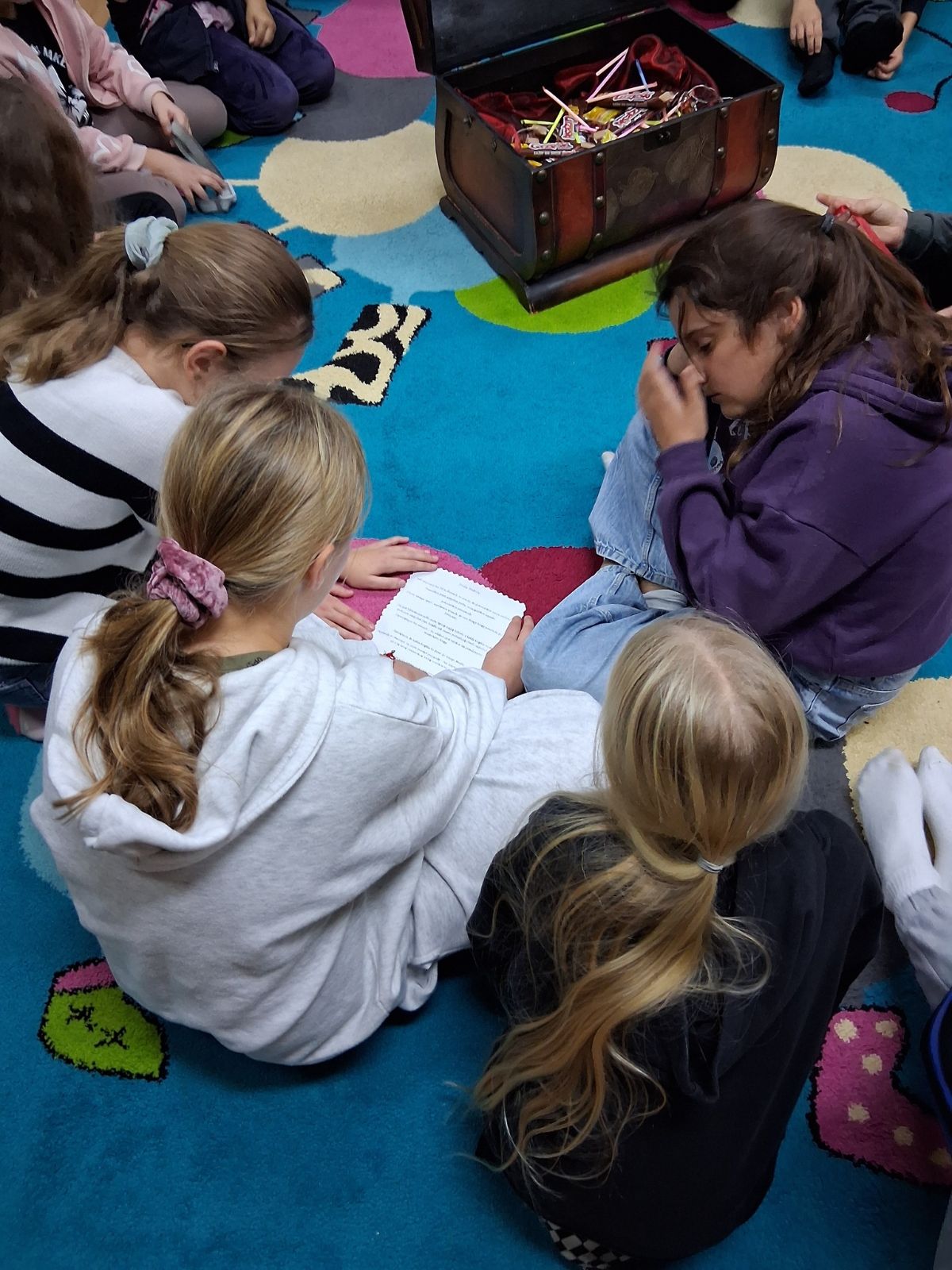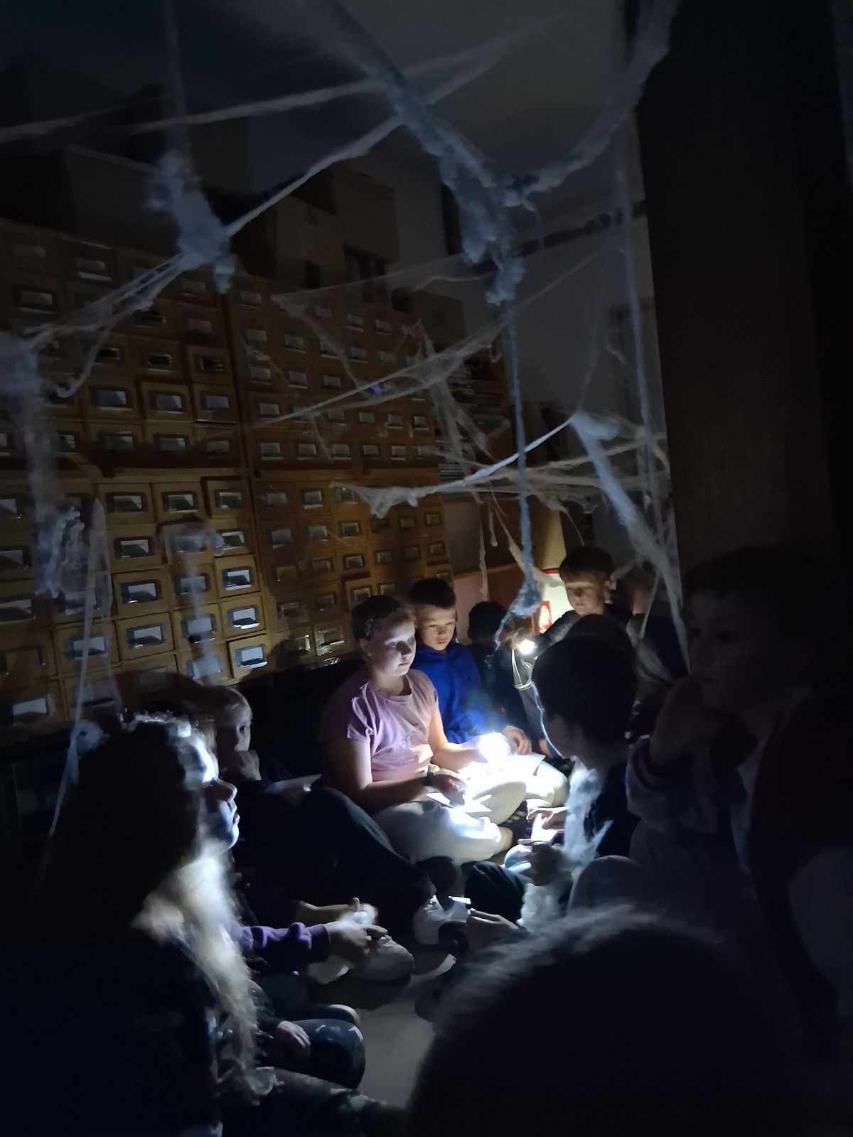 - Escape room w ciemnościach między regałami. Uczestnicy z latarkami odkrywali kolejne działy biblioteki. W każdym pomieszczeniu czekały atrakcje, zadania i przygody: rebusy i szyfry, ukryte wskazówki, mini-misje detektywistyczne i krótkie quizy czytelnicze. Na końcu trasy czekała wielka skrzynia skarbów dla wszystkich, którzy dotarli do finału.