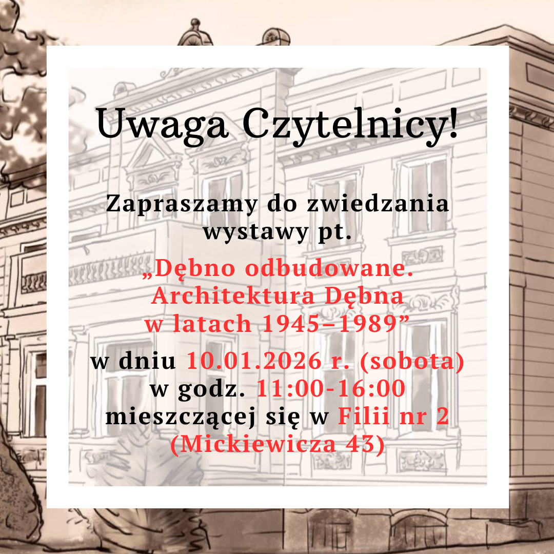 w dniu 10.01.2026 r. w godz. 11:00-16:00. Wystawa mieści się w filii nr 2 - Centrum polsko-niemieckie w Dębnie przy ul. Mickiewicza 43.