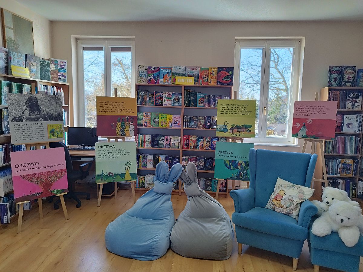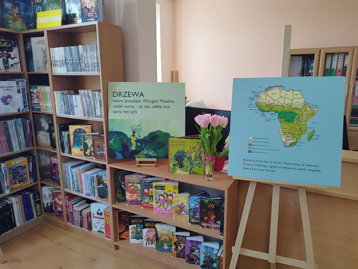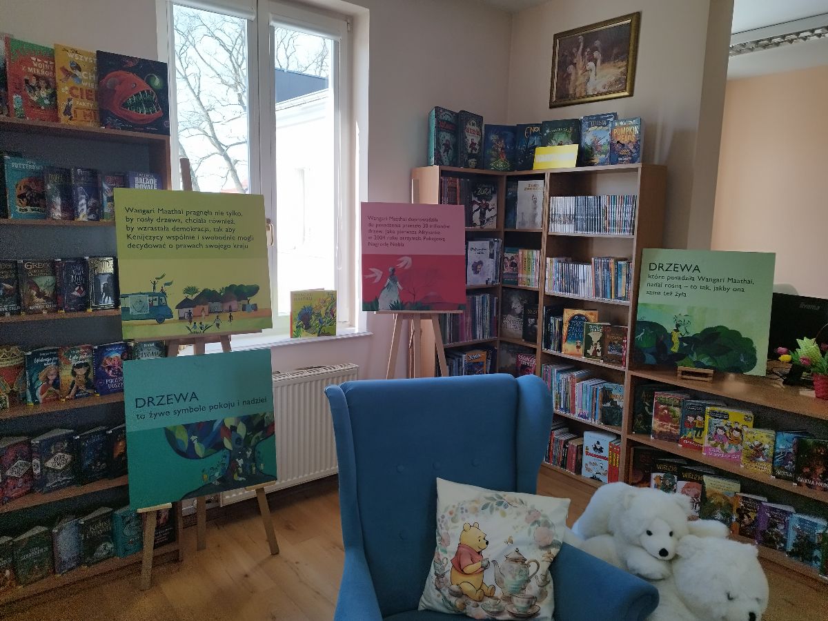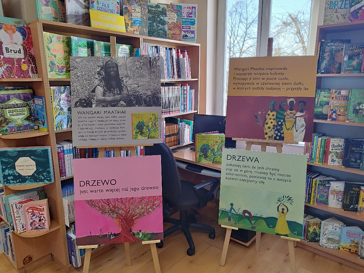Wystawę można oglądać w oddziale dziecięcym. To doskonała okazja, aby najmłodsi (i nie tylko!) poznali historię kobiety, która zmieniła świat na bardziej zielony.