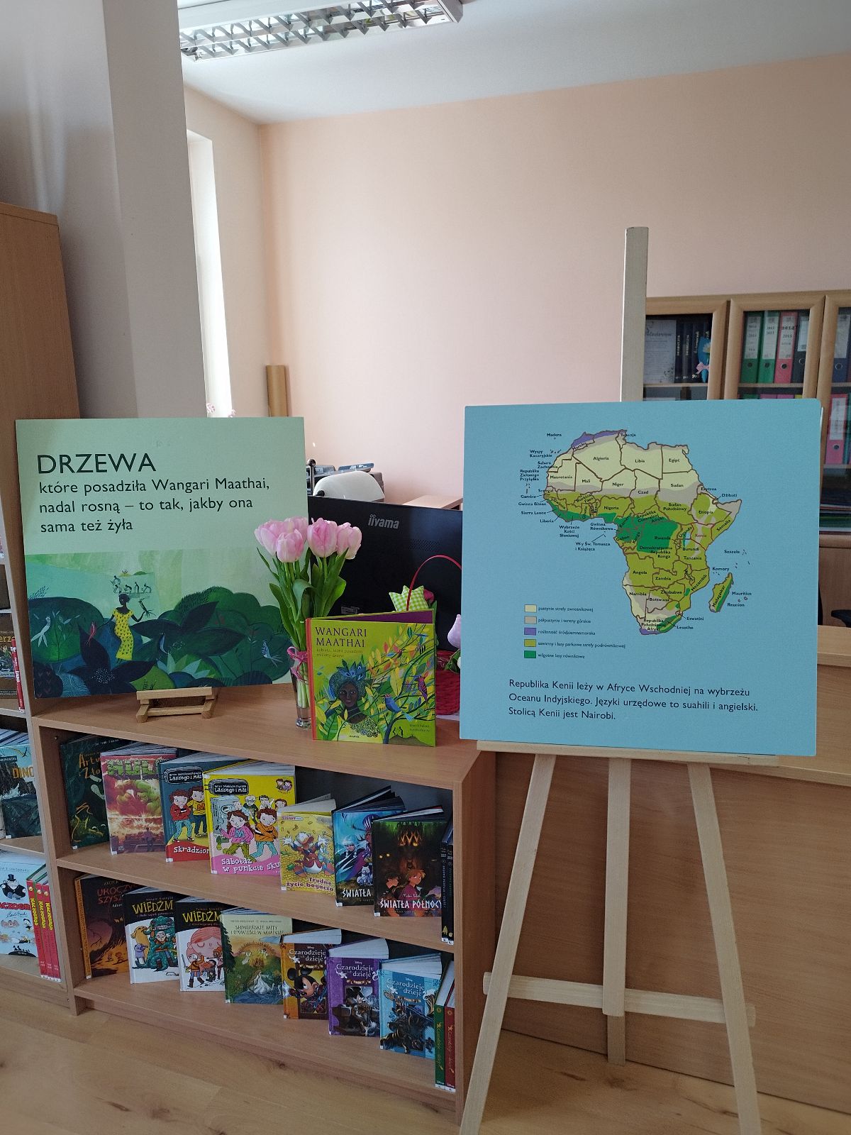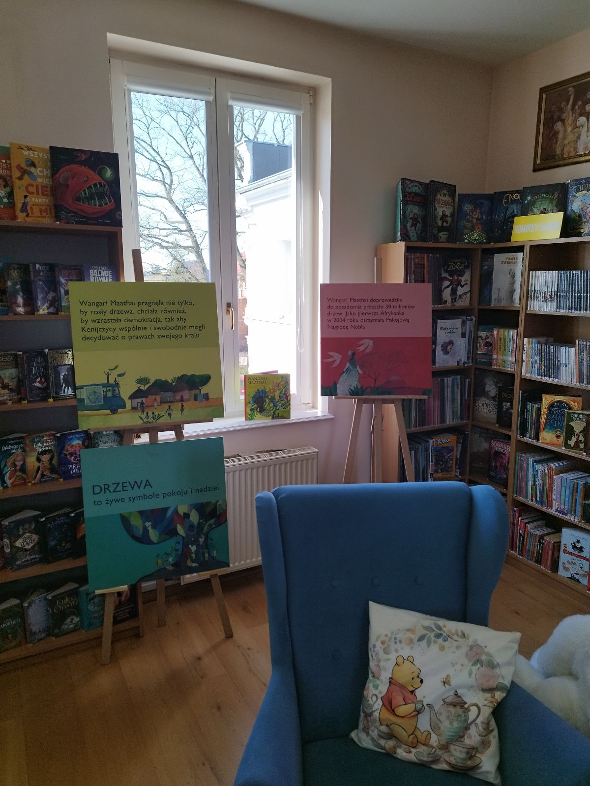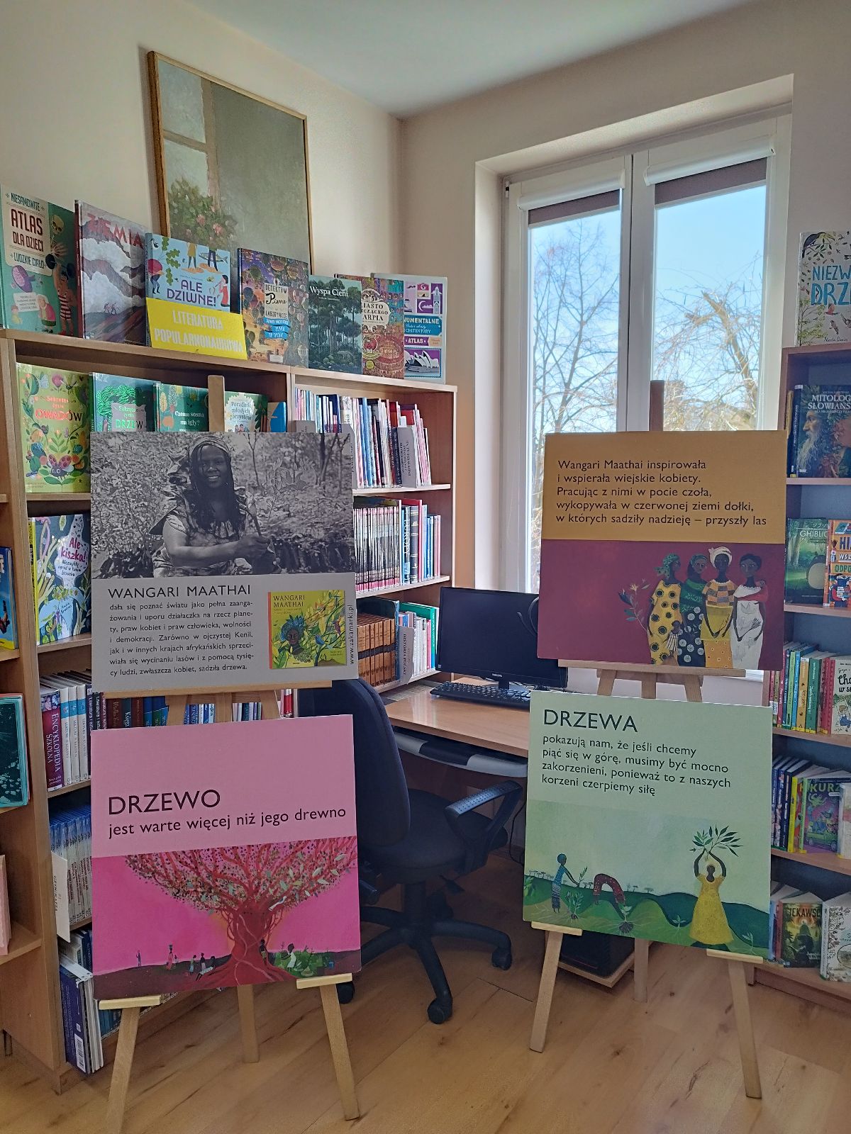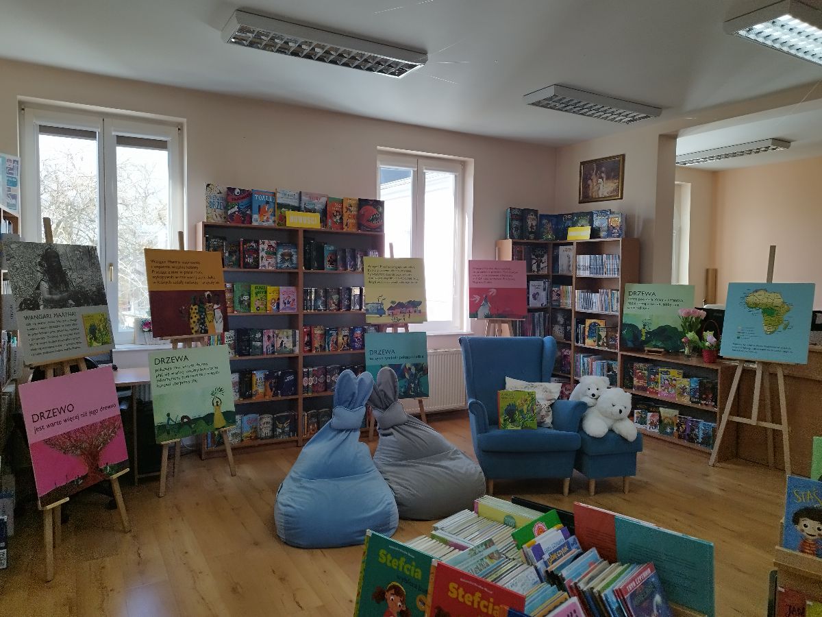 Wystawę można oglądać w oddziale dziecięcym. To doskonała okazja, aby najmłodsi (i nie tylko!) poznali historię kobiety, która zmieniła świat na bardziej zielony.
